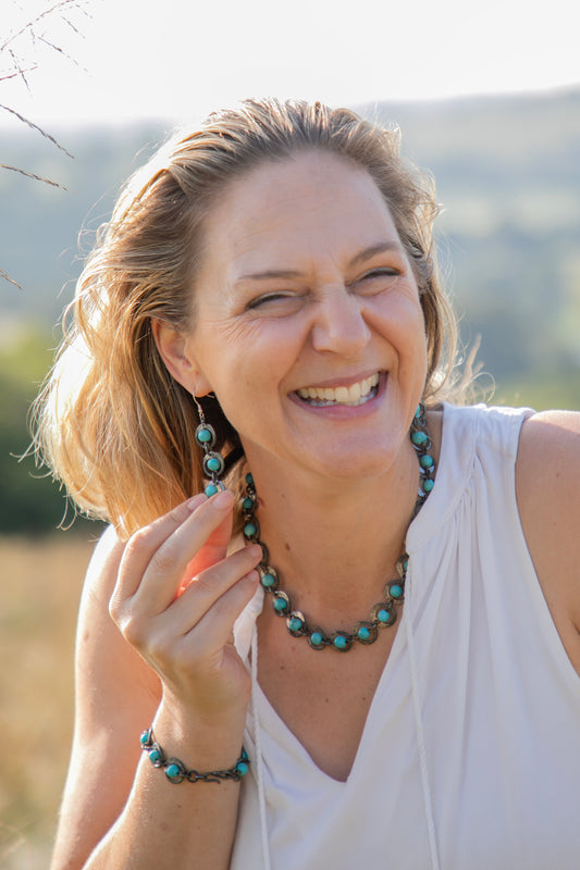 Snare chain earrings with turquoise