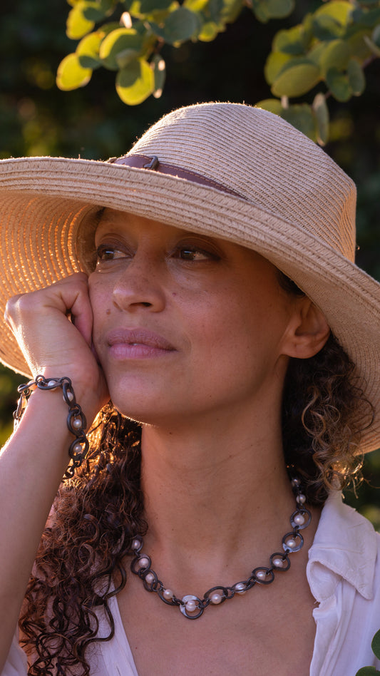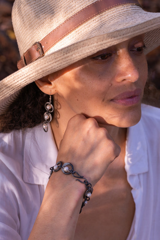 Snare chain bracelet with white pearl