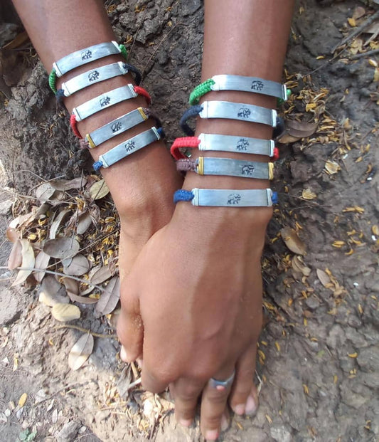 Rhino conservation snare & vegetable ivory bracelet in blue