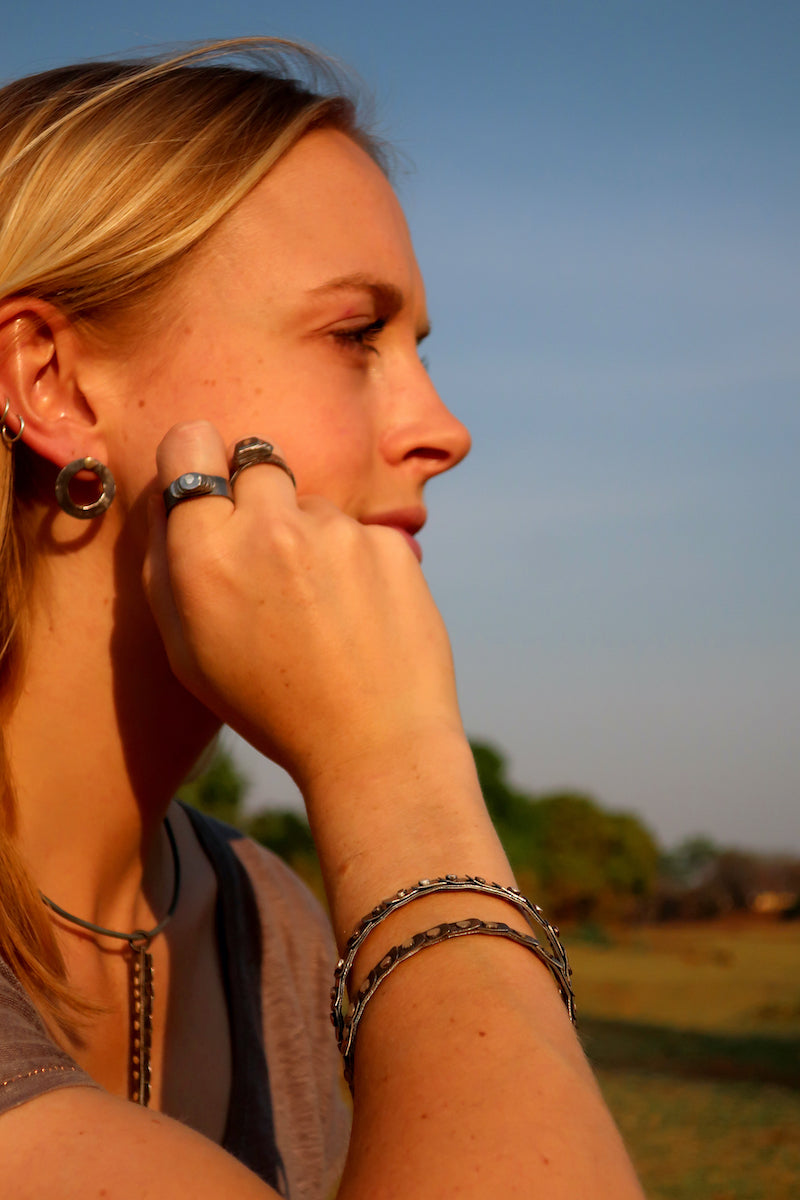 Fusing reclaimed poachers' traps, local materials and international beads we celebrate and invest in the African bush through creativity. Handmade by our rural Zambian team each piece is slightly different. Every sale donates to Zambian conservation.